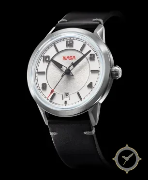 A Vintage watch with a vintage-inspired 34.5mm case, crafted from stainless steel featuring a white dial with a unique textured sunburst center with smooth outer chapter ring finish.