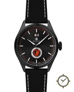 A Sports watch with a bold 44mm presence on the wrist, crafted from stainless steel featuring a black dial with a unique sunburst finish.
