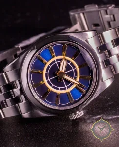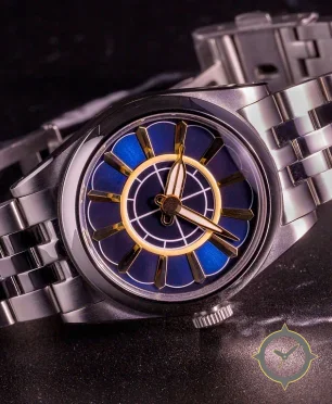 A Dress watch with a bold 42.5mm presence on the wrist, crafted from stainless steel featuring a blue dial with a unique sunburst / radial finish finish.