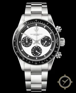 A Chronograph watch, crafted from stainless steel featuring a striking white dial.