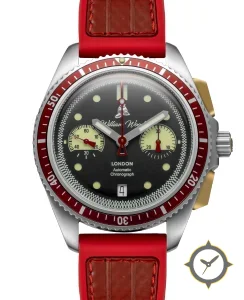 A Dive watch with a vintage-inspired 35mm case, crafted from stainless steel featuring a black dial with a unique matte finish.