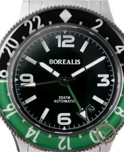 A GMT watch with a bold 45mm presence on the wrist, crafted from stainless steel featuring a black dial with a unique lacquer finish and a true GMT complication for tracking a second time zone.