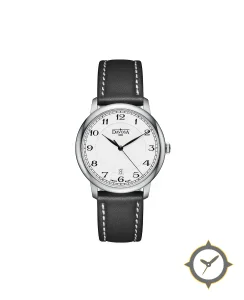 A Dress watch with a vintage-inspired 27.5mm case, crafted from stainless steel featuring a white dial with a unique smooth finish.