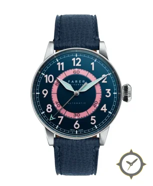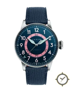A Dress watch with a vintage-inspired 34mm case, crafted from stainless steel featuring a navy dial with a unique matte finish.