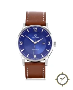 A Dress watch with a bold 41.5mm presence on the wrist, crafted from stainless steel featuring a blue dial with a unique sunburst finish.