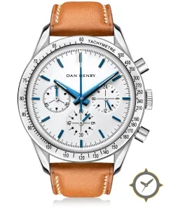 A Chronograph watch with a versatile 41mm case, that suits most wrists, crafted from stainless steel featuring a white dial with a unique smooth lacquer/metallic finish finish.