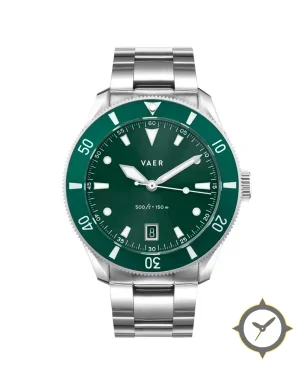 A Dive watch with a versatile 39mm case, that suits most wrists, crafted from stainless steel featuring a green dial with a unique sunburst finish.