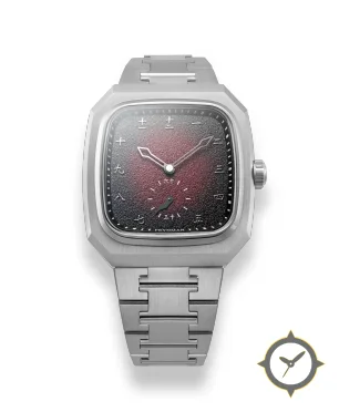 A Luxury watch with a bold 42mm presence on the wrist, crafted from stainless steel featuring a red dial with a unique textured/grained (sandblasted/grain finish) finish.