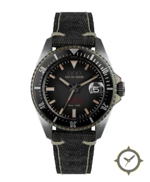 A Dive watch with a bold 43.5mm presence on the wrist, crafted from stainless steel featuring a black dial with a unique faded gradient (fumé) with matte finish finish.