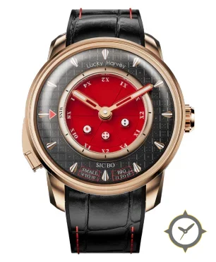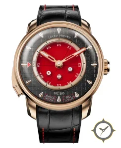A Luxury watch with a bold 43mm presence on the wrist, crafted from gold featuring a red dial with a unique textured outer ring with smooth central subdial (clous de paris pattern on outer dial) finish.