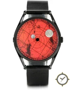 A Minimalist watch with a vintage-inspired 31mm case, crafted from stainless steel featuring a red dial with a unique speckled/grained matte finish finish.