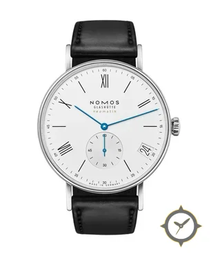 A Dress watch with a bold 46.5mm presence on the wrist, crafted from stainless steel featuring a white dial with a unique matte lacquer finish.