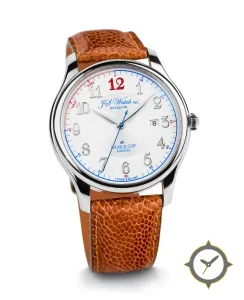 A Dress watch with a vintage-inspired 36mm case, crafted from stainless steel featuring a white dial with a unique smooth finish.