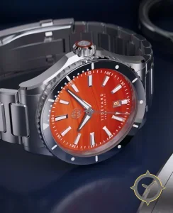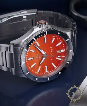 A Dive watch with a versatile 40.5mm case, that suits most wrists, crafted from stainless steel featuring a orange dial with a unique sunburst / subtle radial texture finish.