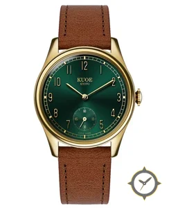 A Dress watch with a vintage-inspired 37mm case, crafted from gold featuring a green dial with a unique sunburst finish.