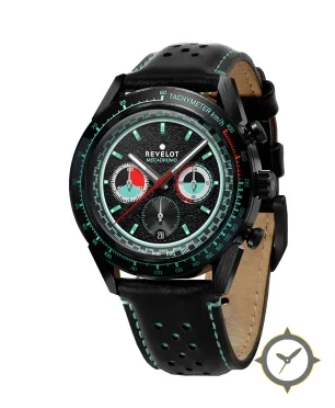 A Racing watch with a vintage-inspired 34mm case, crafted from stainless steel featuring a black dial with a unique textured/grain finish.