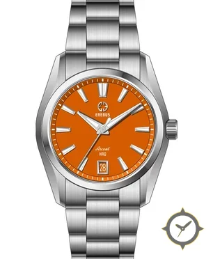 A Sports watch with a vintage-inspired 31.5mm case, crafted from stainless steel featuring a orange dial with a unique lacquer finish.