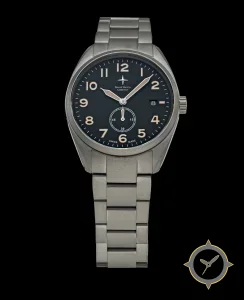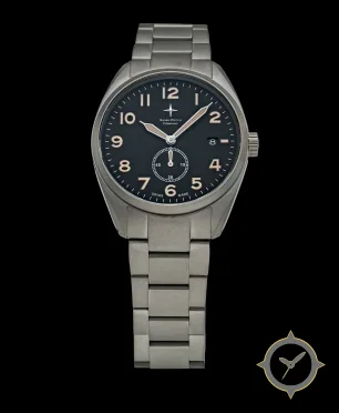 A Pilot watch with a bold 44.5mm presence on the wrist, crafted from titanium featuring a black dial with a unique matte finish.