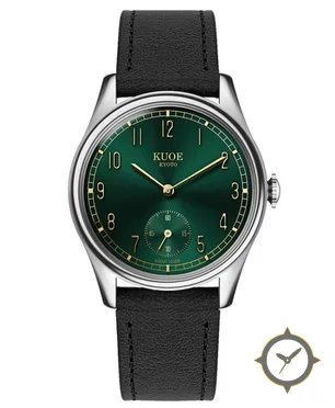A Dress watch with a vintage-inspired 28.5mm case, crafted from stainless steel featuring a green dial with a unique sunburst finish.