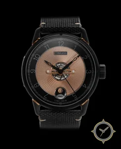 A Dress watch with a bold 42.5mm presence on the wrist, crafted from stainless steel featuring a gold dial with a unique guilloché (engine-turned) finish.
