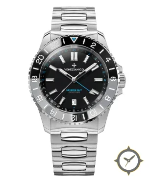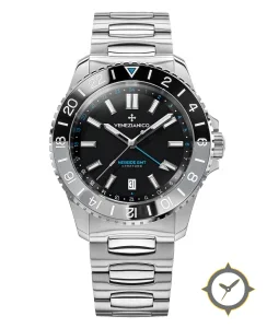 A GMT watch with a bold 42mm presence on the wrist, crafted from stainless steel featuring a black dial with a unique matte finish and a true GMT complication for tracking a second time zone.