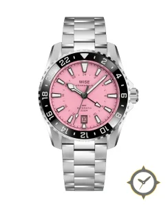 A GMT watch with a bold 42.5mm presence on the wrist, crafted from stainless steel featuring a red dial with a unique matte finish and a true GMT complication for tracking a second time zone.