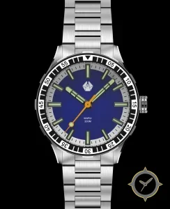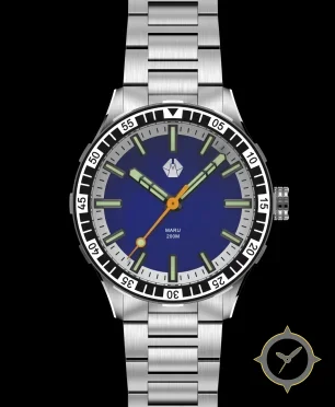 A Dive watch, crafted from stainless steel featuring a blue dial with a unique matte finish.