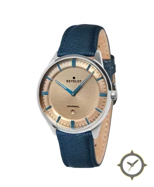 A Dress watch with a versatile 38mm case, that suits most wrists, crafted from stainless steel featuring a gold dial with a unique guilloché (hobnail / clous de Paris) finish.