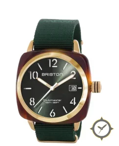 A Vintage watch with a bold 42mm presence on the wrist, crafted from resin featuring a green dial with a unique sunburst finish.