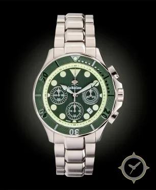 A Sports watch with a versatile 39.5mm case, that suits most wrists, crafted from stainless steel featuring a green dial with a unique vertical brushed/striped finish.