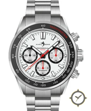 A Chronograph watch with a bold 46mm presence on the wrist, crafted from stainless steel featuring a white dial with a unique lacquer finish.