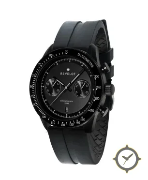 A Chronograph watch with a bold 45mm presence on the wrist, crafted from stainless steel featuring a black dial with a unique matte finish.