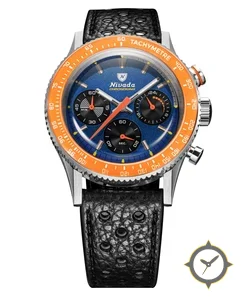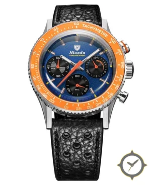 A Chronograph watch with a bold 41.5mm presence on the wrist, crafted from stainless steel featuring a blue dial with a unique textured metallic (grained, slight sunburst) finish.