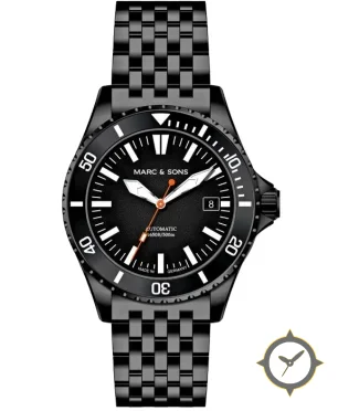 A Dive watch with a versatile 39mm case, that suits most wrists, crafted from stainless steel featuring a black dial with a unique matte-grain finish.