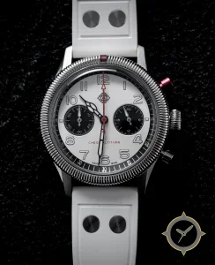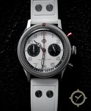 A Pilot watch with a bold 43mm presence on the wrist, crafted from stainless steel featuring a white dial with a unique matte/smooth finish.