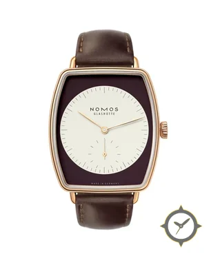 A Dress watch with a vintage-inspired 34mm case, crafted from gold featuring a white dial with a unique matte finish.
