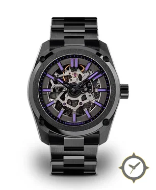 A Skeleton watch with a versatile 41mm case, that suits most wrists, crafted from stainless steel featuring a black dial with a unique skeletonized finish.