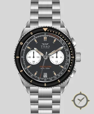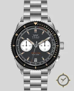 A Chronograph watch with a versatile 39.5mm case, that suits most wrists, crafted from stainless steel featuring a black dial with a unique matte finish.