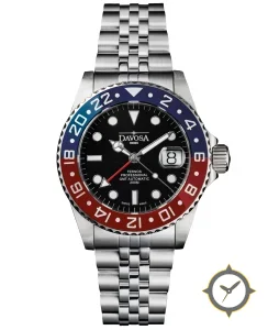 A GMT watch with a bold 47mm presence on the wrist, crafted from stainless steel featuring a black dial with a unique glossy finish and a true GMT complication for tracking a second time zone.