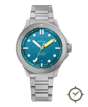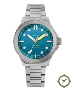 A Dive watch with a vintage-inspired 37mm case, crafted from stainless steel featuring a turquoise dial with a unique vertical/sunburst brushed finish finish.