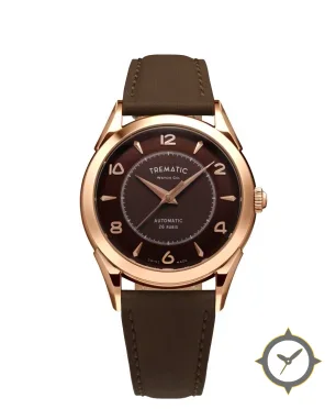 A Dress watch with a vintage-inspired 34mm case, crafted from gold featuring a brown dial with a unique matte finish.