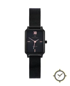A Dress watch with a vintage-inspired 17mm case, crafted from stainless steel featuring a black dial with a unique subtle radial guilloche / sunburst texture finish.