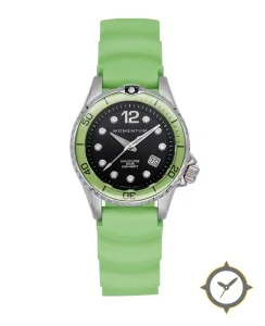 A Dive watch with a vintage-inspired 24.5mm case, crafted from stainless steel featuring a black dial with a unique matte finish.