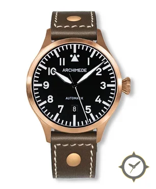 A Pilot watch with a bold 50mm presence on the wrist, crafted from bronze featuring a black dial with a unique matte finish.