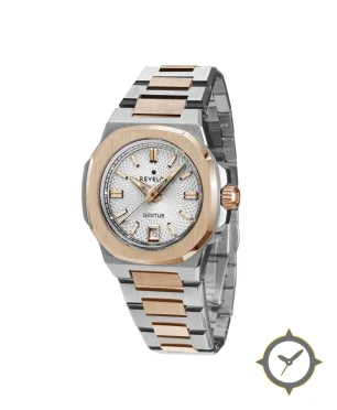 A Luxury watch with a bold 41.5mm presence on the wrist, crafted from stainless steel featuring a white dial with a unique guilloché / waffle textured pattern finish.
