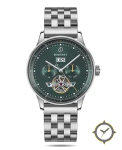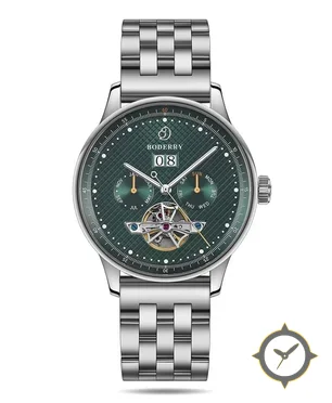 A Dress watch with a bold 45.5mm presence on the wrist, crafted from stainless steel featuring a green dial with a unique textured guilloché / cross-hatch finish.