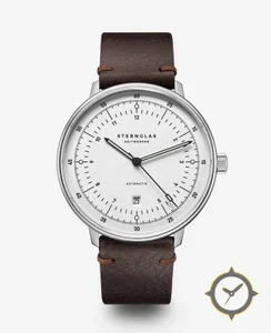 A Minimalist watch with a bold 48.5mm presence on the wrist, crafted from stainless steel featuring a white dial with a unique matte/grain (sandblasted) finish.