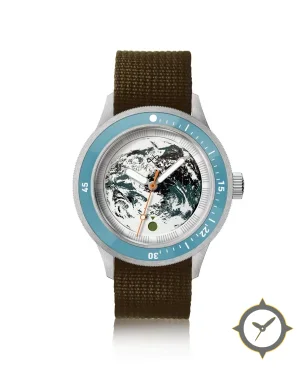 A Dive watch with a versatile 41mm case, that suits most wrists, crafted from stainless steel featuring a white dial with a unique printed globe artwork with radial chapter ring finish.