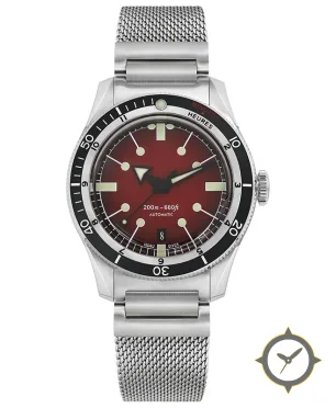 A Dive watch with a versatile 40mm case, that suits most wrists, crafted from stainless steel featuring a red dial with a unique fumé/gradient (sunburst effect) finish.