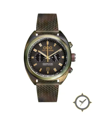A Chronograph watch with a bold 49mm presence on the wrist, crafted from bronze featuring a black dial with a unique grainy matte / textured finish.